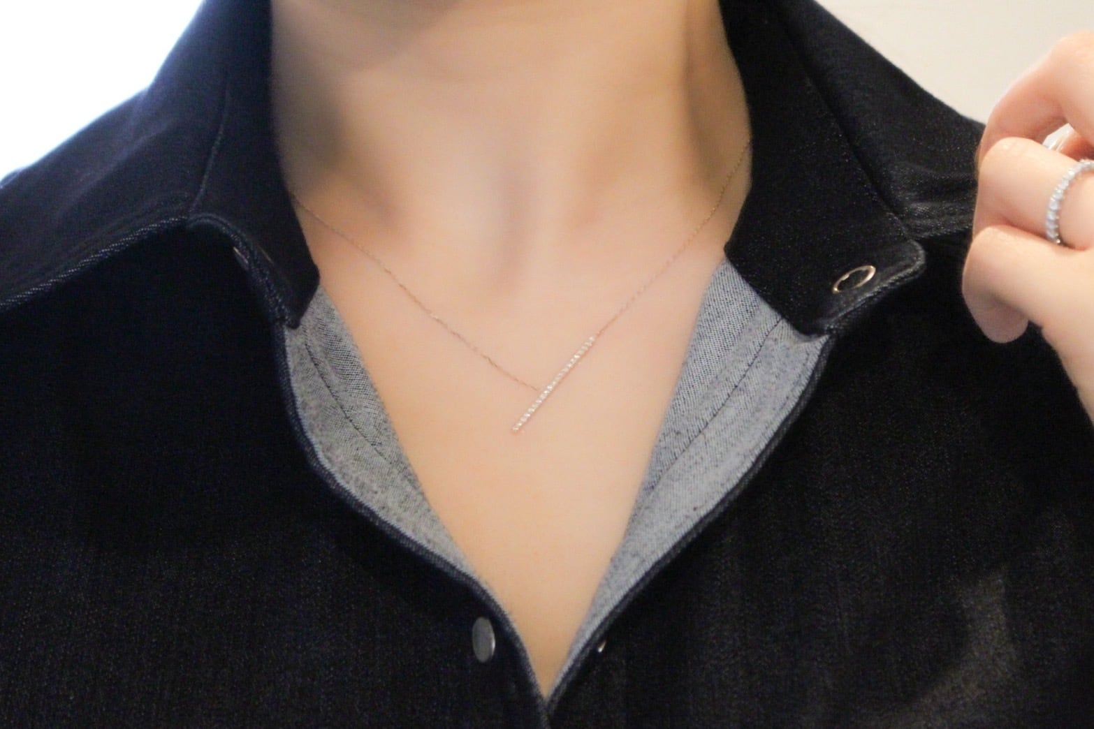 華奢なチェーンに、繊細なバーラインが美しく輝く「Y」ネックレス。