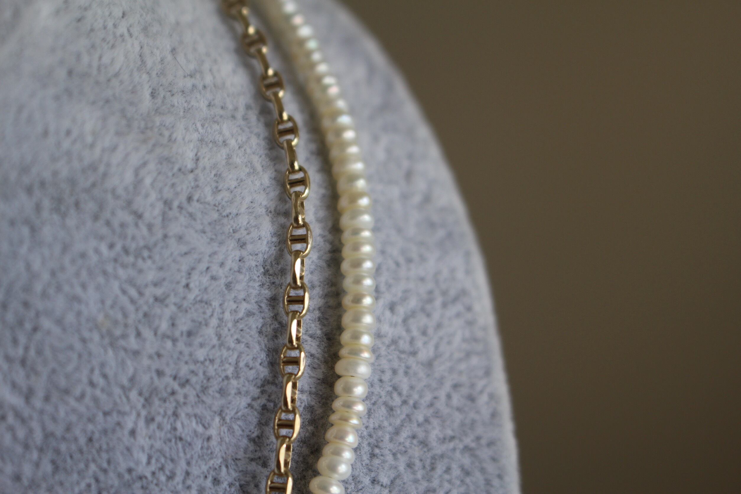 艶やかな淡水パールとK10のアンカーチェーンを組み合わせた「パールアンカーチェーンネックレス」が登場です。2連のデザインは、シンプルながらも華やかさを兼ね備え、さまざまなコーディネートを引き立てます。1本で首元をさりげなく彩り、デイリー使いから特別な日まで幅広く活躍します。